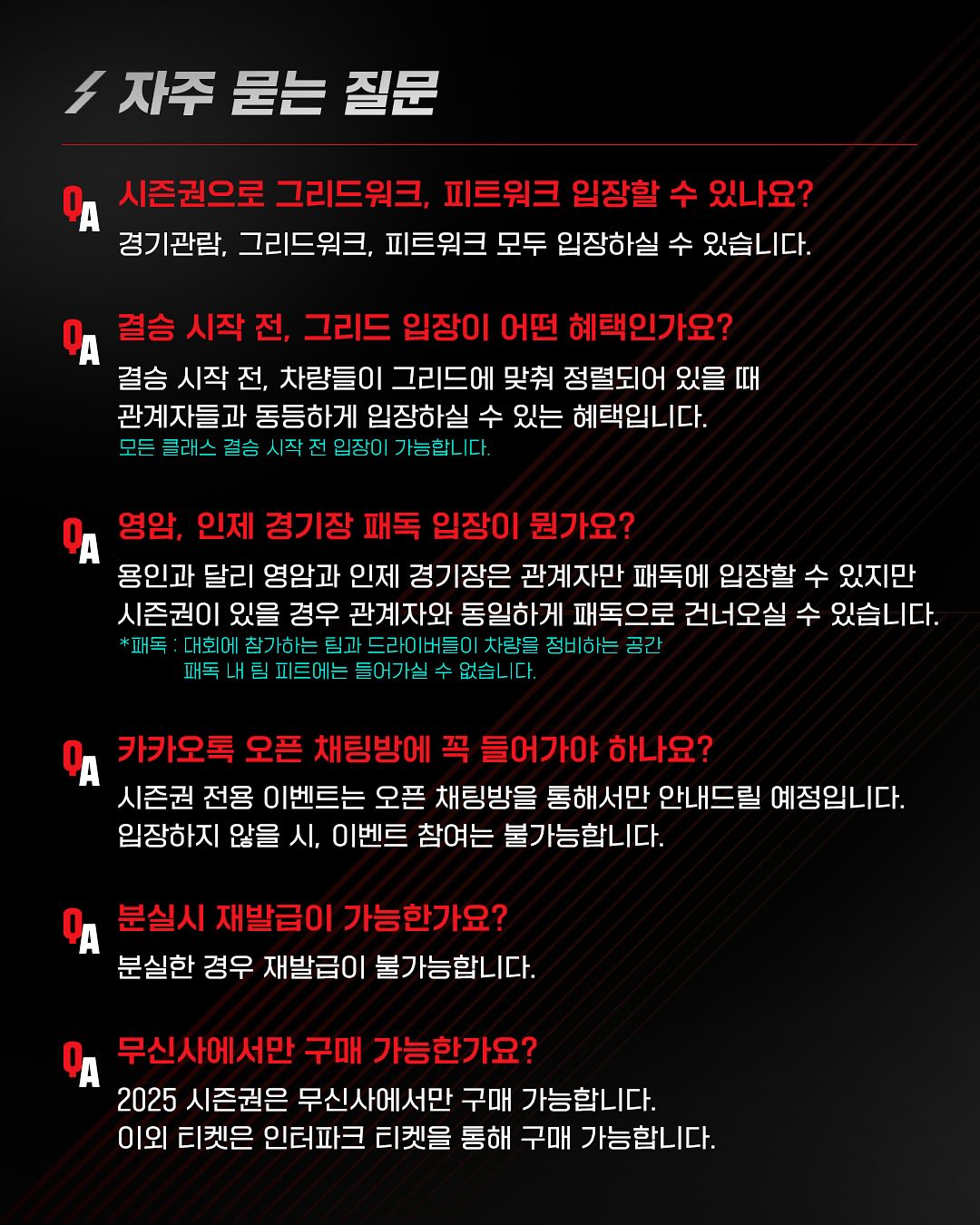 ※ 피트 및 그리드워크 행사는 드리아버와 레이싱카를 직접 만나 포토타임을 갖거나 가수 공연을 볼수 있습니다
